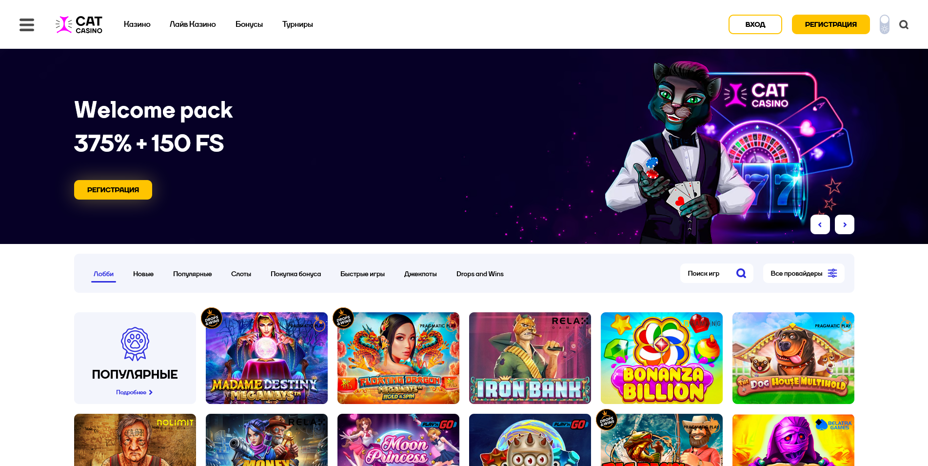 Данный скрипт представлен в оформлении оригинального сайта Cat Casino.